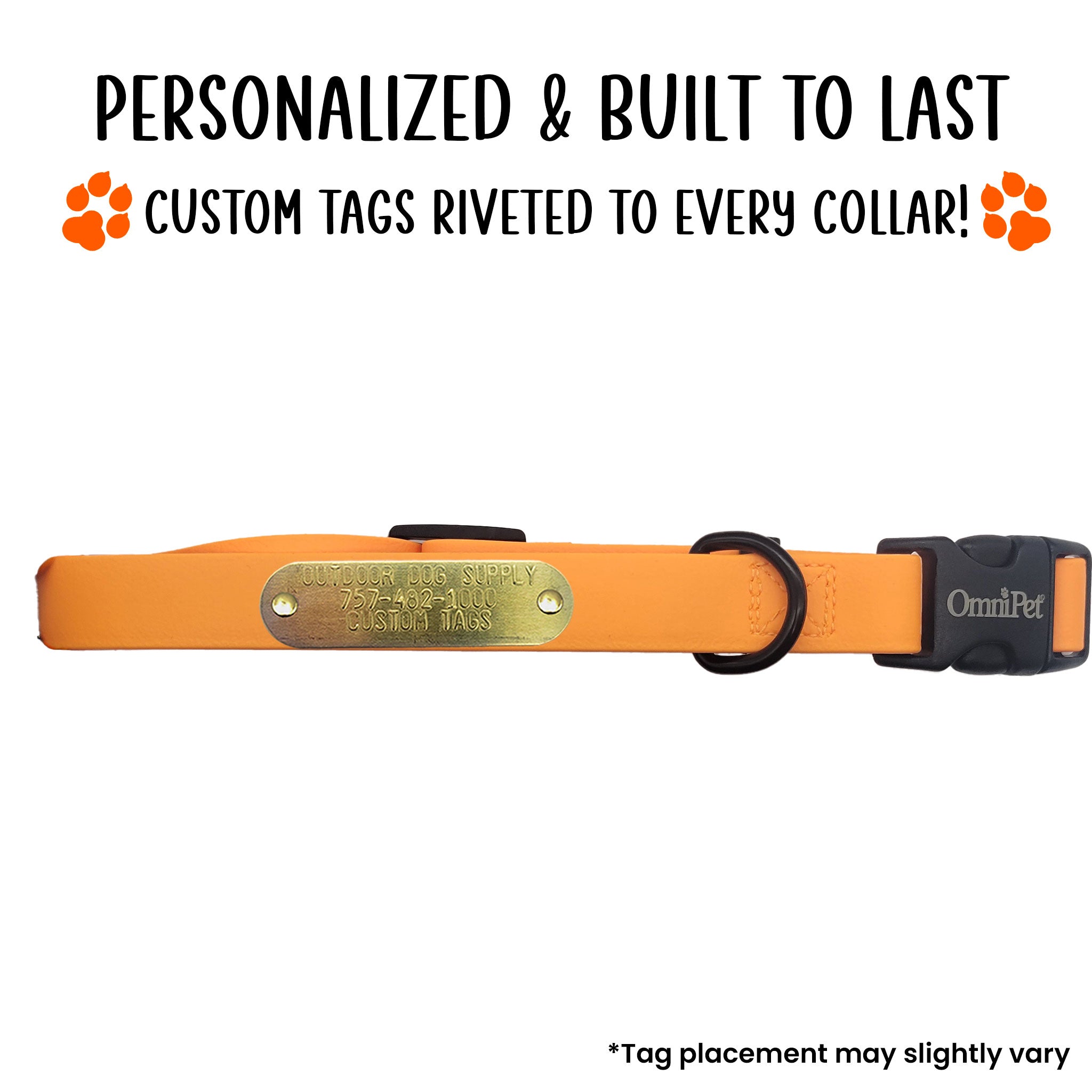 Customize the free name plate with your dog's name, your phone number, and other important info to enhance safety and personalization. Each name plate is positioned close to the D-ring to maximize visibility and maintain the collar's adjustable features. Perfect for dogs that lead an active lifestyle but also value comfort and style. Note: Actual color may vary slightly due to screen settings.