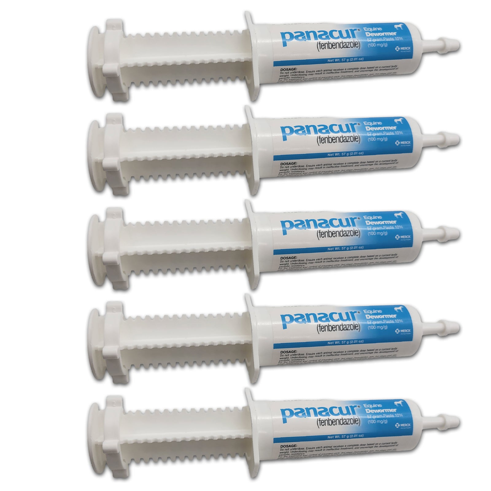 The Panacur® Powerpac Paste 5-Pack provides a complete 5-day deworming treatment with five 57 g tubes. Each contains 10% fenbendazole to eliminate strongyles, roundworms, and more. Safe for horses, foals, and pregnant mares when used as directed.